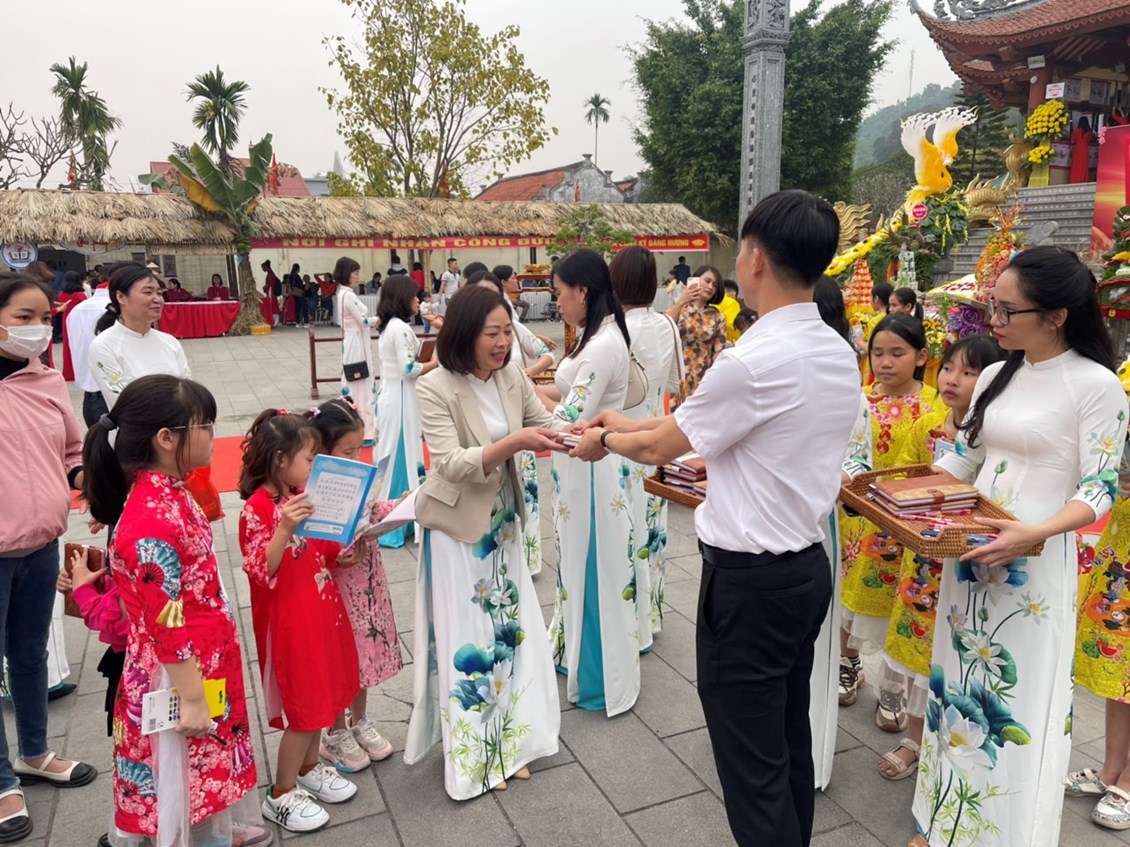 Hòa chung các hoạt động tại Lễ hội Kỉ niệm 485 năm ngày mất Trạng nguyên Lê Ích Mộc, chiều ngày 04.03.2023 trường Tiểu học An Sơn tổ chức dâng hương tại Đền Trạng.