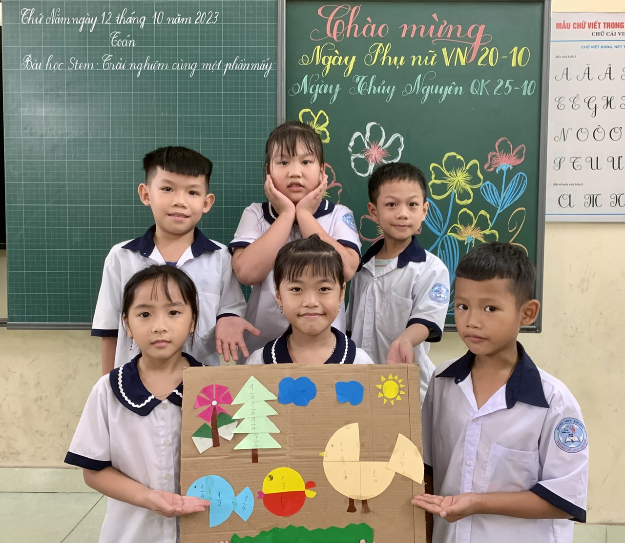 Giáo dục STEM là một cách tiếp cận liên môn dạy và học kết nối các lĩnh vực khoa học (S), công nghệ (T), kĩ thuật (E), toán học (M). Ngoài ra giáo dục STEM còn trang bị cho học sinh những kĩ năng mềm cần thiết như: kĩ năng làm việc nhóm, kĩ năng cộng tác, tư duy sáng tạo…Trong tiết học “Bài học Stem: Trải nghiệm cùng một phần mấy" các em đã vận dụng kiến thức từ 1/2;1/4; 1/6; 1/8 làm nên được rất nhiều sản phẩm sáng tạo và đẹp mắt. Các em vô cùng hào hứng và thích thú trong quá trình tạo ra các sản phẩm. Sau bài học, các em cũng thêm mạnh dạn, tự tin, sáng tạo, vui vẻ và đoàn kết hơn!